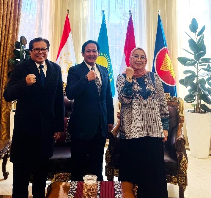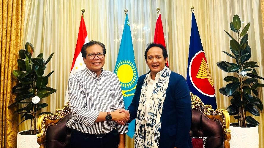 Ketua Tim Ekspedisi Patriot Universitas Indonesia (UI) Output 1 untuk Melolo sekaligus Ketua Tim Pengabdian Masyarakat DPIS UI untuk Sumba Timur, Dr. Hendra Kaprisma, bertemu dengan Duta Besar Republik Indonesia untuk Republik Kazakhstan dan Republik Tajikistan, Yang Mulia Dr. M. Fadjroel Rachman, di KBRI Astana, Kazakhstan pada 21 Oktober 2025.